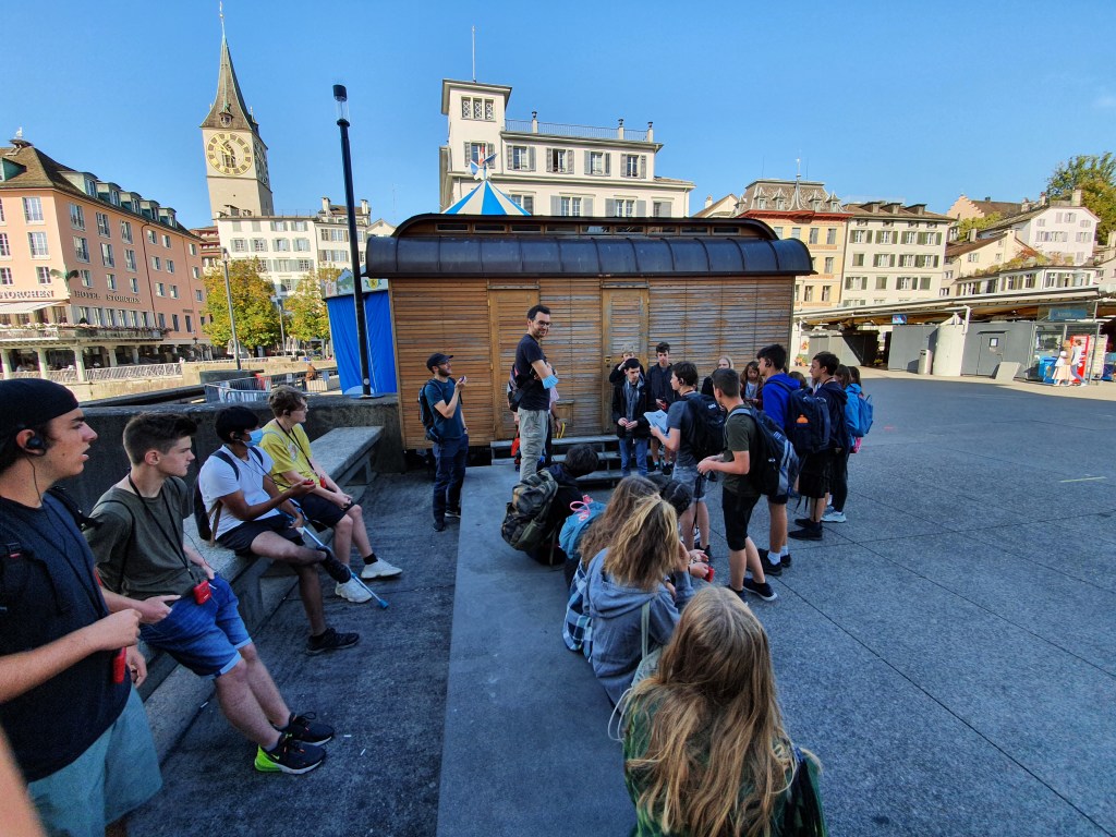 Um 10 Uhr fanden wir uns versammelt auf der Gemüsebrücke. Zwischen dem Rathaus und dem kleinen Weinplatz begann unser Entdeckungs-Spatziergang um heraus zufinden, wie sich die Verwendung der Limmat über die Jahrhunderte veränderte. Noch nicht immer war der Fluss der durch das Herz zürichs fliesst so sauber wie heutzutage.