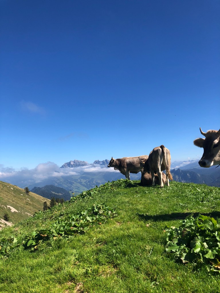 Darauf wurde der Weg leider sehr viel steiler und unbeständiger. Nach der zweiten Rast bekamen wir einen kleinen Wissensinput über die örtlichen Naturbeschaffenheiten. Daraufhin waren einigen schon etwas erschöpft und das Feld teilte sich. Glücklicherweise waren wir dann relativ bald schon bei der Berghütte und durften uns ausruhen, während wir unser Mittagessen genossen. Ohne schweres Gepäck ging es dann noch auf die Spitze des Speers, was einige an die letzen Kräfte brachte. Doch schlussendlich hatten es alle geschafft und konnten die schöne Aussicht geniessen. Nach einem schnellen Abstieg bezogen wir unsere Zimmer und beendeten damit die Wanderung endgültig, für den Dienstag.