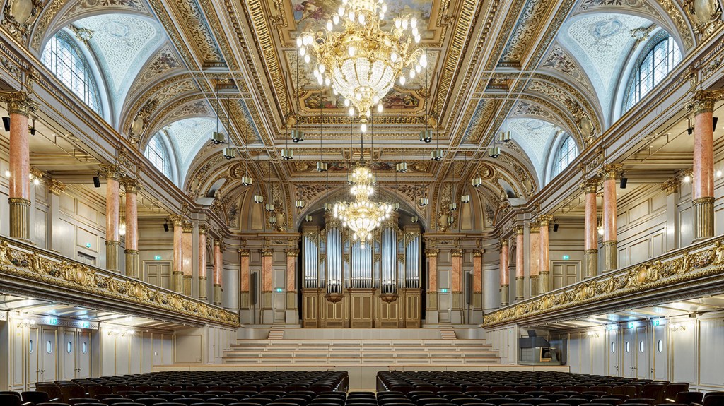 Es ist die Zeit der Männerchöre und der patriotischen Feiern, als der Konzertsaal entstand und restauriert wurde. Die alte Tonhalle war am Kornhaus am See (auf dem heutigen Sechseläuten-Platz). Es diente dem Konzertleben für 30 Jahre, trotz akustischen Mängeln. Neben der alten Tonhalle entstand ein Stadttheater, das heute als Opernhaus bekannt ist. Doch das aufstrebende Musikleben verlangte ein Konzerthaus mit einer besseren Akustik, als die alte Tonhalle bieten konnte. Am General-Guisan-Quai wurde deshalb ein neues Konzerthaus errichtet. Die neu entstandene Tonhalle wurde eingeweiht mit Johannes Brahms, dieser dirigierte, bei der Eröffnung, das erste Konzert. Auch eine imposante Orgel wurde in den grossen Konzertsaal eingebaut. Im grossen Konzertsaal der Tonhalle Zürich zeigen fünf verschiedene Deckenmalereien verschiedene musikalische Szenarien. Im Zentrum des sogenannten Komponistenhimmel sind die Portraits von Bach, Händel, Gluck, Haydn, Mozart, Beethoven, Wagner und Brahms, alle blicken in den grossen Konzertsaal hinunter. Es stellt ebenfalls ein Wirbelwind von Musikanten und kleinen Engeln, die in den Himmel aufsteigen, dar, denn in den Wolken thront Apollo, der Gott der Musik.