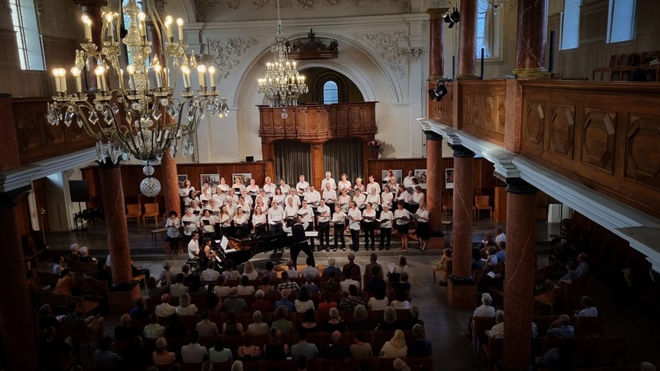Es war ein kalter Freitagabend im Dezember, als ich schon sehr reif für das Wochenende die französische Kirche beim Stadelhofen betrat. Zu meiner Überraschung herrschte eine sehr ausgelassene Stimmung. Vielleicht lag dies auch an dem Apéro oder daran, dass an diesem Abend das 15-jährige Jubiläum der Chorgruppe CoroVivo gefeiert wurde.