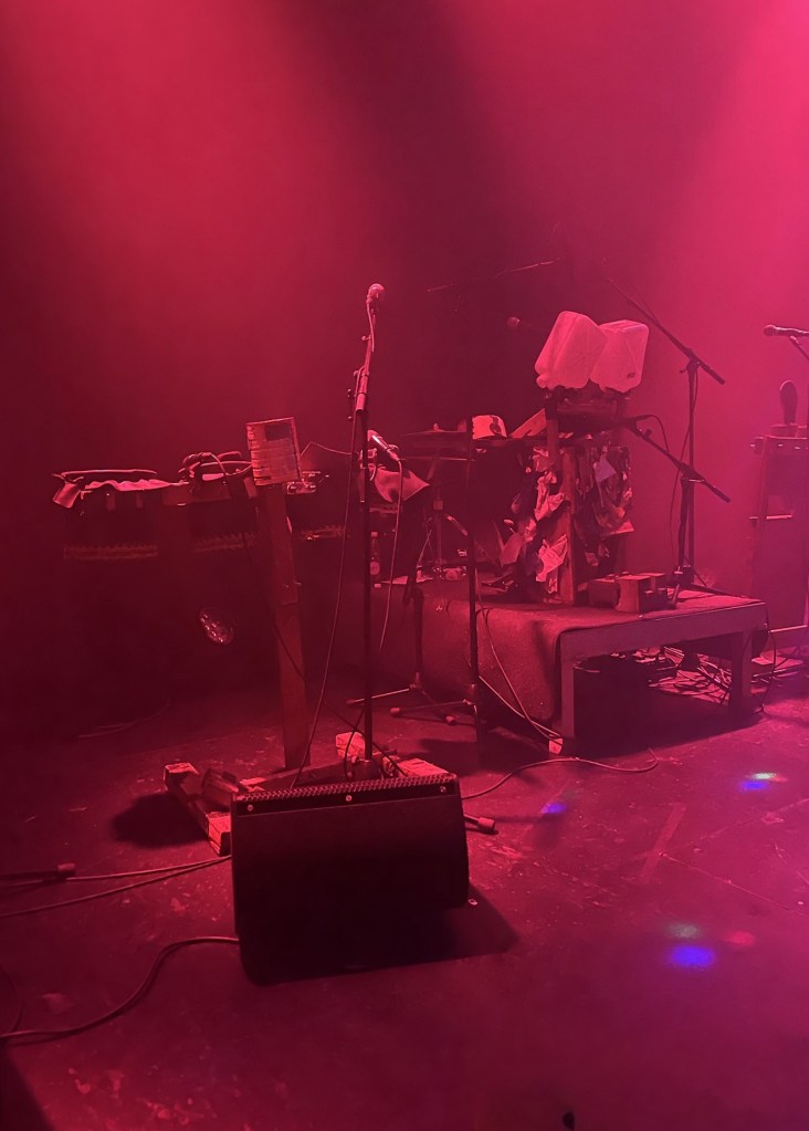 Das Moods im Schiffbau war an diesem Abend gut gefüllt. Wir kannten die Band bisher noch nicht, aber die anderen schienen bereits vertraut mit dieser einzigartigen Gruppe. Kaum wurden die Lichter gedämmt, erklang in voller Laustärke der Bass. Mit ihren aus Müll selbstgebauten Instrumenen, begann das schlagzeug-ähnliche Konstrukt zu ertönen. Darauf folgten immer mehr ryhmusbegleitende Insturmente, bis nach einem langen Intro der Gesang einsetzte. Keine fünf Minuten brauchte es, bis sich das Publikum erhob und den Parkettboden vor der Bühne komplett ausfüllte. Um das unbeschreibliche Gefühl im dunklen Club zu intensivieren, baute der Gitarrist eine Call-Response Beziehung zum Publikum auf, bei dem er uns immer wieder aufforderte, die Worte „Fulu“ und „Miziki“ zu wiederholen.