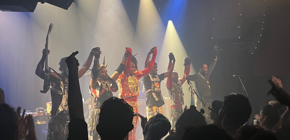 Ein Höhepunkt des Abends war aber ein längerer rhythmischer Aufbau, in dem sich Tempo und Intensität stetig steigerten. Die Musiker spielten sich gegenseitig an, reagierten spontan aufeinander und trieben den Groove immer weiter voran. Das Publikum folgte begeistert, klatschte, tanzte und ließ sich vollkommen auf den Moment ein. Sogar einige der Badmitglieder begaben sich in die Masse und tanzten mit dem Publikum. Es war eine Höllenstimmung. Die Stühle standen völlig leer, begeisterte Zuhörer wurden auf die Bühne gebeten um zu tanzen und die Veranstaltungstechniker*innen hatten bereits ihre Kopfhörer abgelegt.