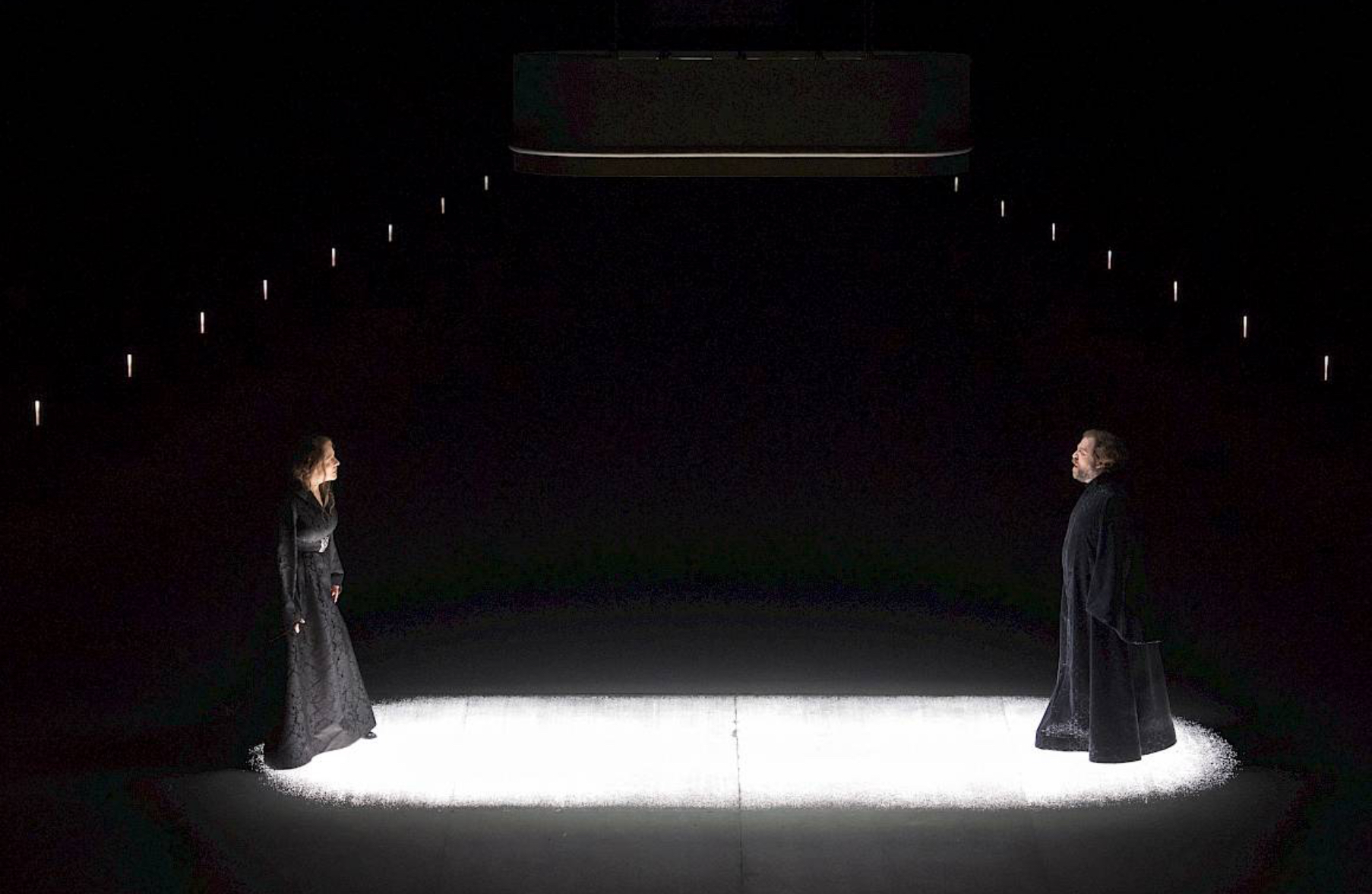 Eben diese Fantasien von Macbeth prophezeiten ihm, dass er der Thane of Cawdor, also der Heerführer der Schottischen Truppen im Krieg, und später der Nachfolger des Königs werden würde. Die erste Prophezeiung der Zwitter traf ein. Das ganze wurde von sehr dramatischer Musik begleitet, so wie es in Opern üblich ist. Das Bühnenbild war eher schlicht gehalten. Eigentlich war alles dunkel aber es schien wie ein langer Gang, denn es gab Lichter, welche von vorne bis nach ganz hinten gingen. Zudem gab es eine Art Lichtkegel, welcher sich stets nach oben und unten bewegte, je nach dem was wo gerade passierte. Wir haben uns in der Klasse Gedanken gemacht, was dieser Kegel zu bedeuten hatte und sind auf mehrere Theorien gekommen. Unsere eine Überlegung war, dass der Kegel das Bewusstsein von Mac Beth darstellen könnte. Der Kegel wäre dann also das, was er bewusst wahrnimmt und das ausserhalb des Kegels das, was um oder in ihm passiert, er aber nicht bewusst wahrnimmt. Dafür sprechen würde auch die generelle Stimmung während der ganzen Vorstellung, da diese sehr düster war und der Wahnsinn ein grosses Motiv dabei war. Kosky erklärte, dass die Figuren in dem Lichtkegel sich wie Laborratten in einem Käfig bewegen würden und man aber nicht genau wüsste, was das Licht ist; Schicksal, Natur, klinische Künstlichkeit? Der Kontrast von Hell und Dunkel seie aber sehr wichtig, was das Bühnenbild angehe.